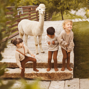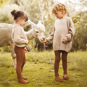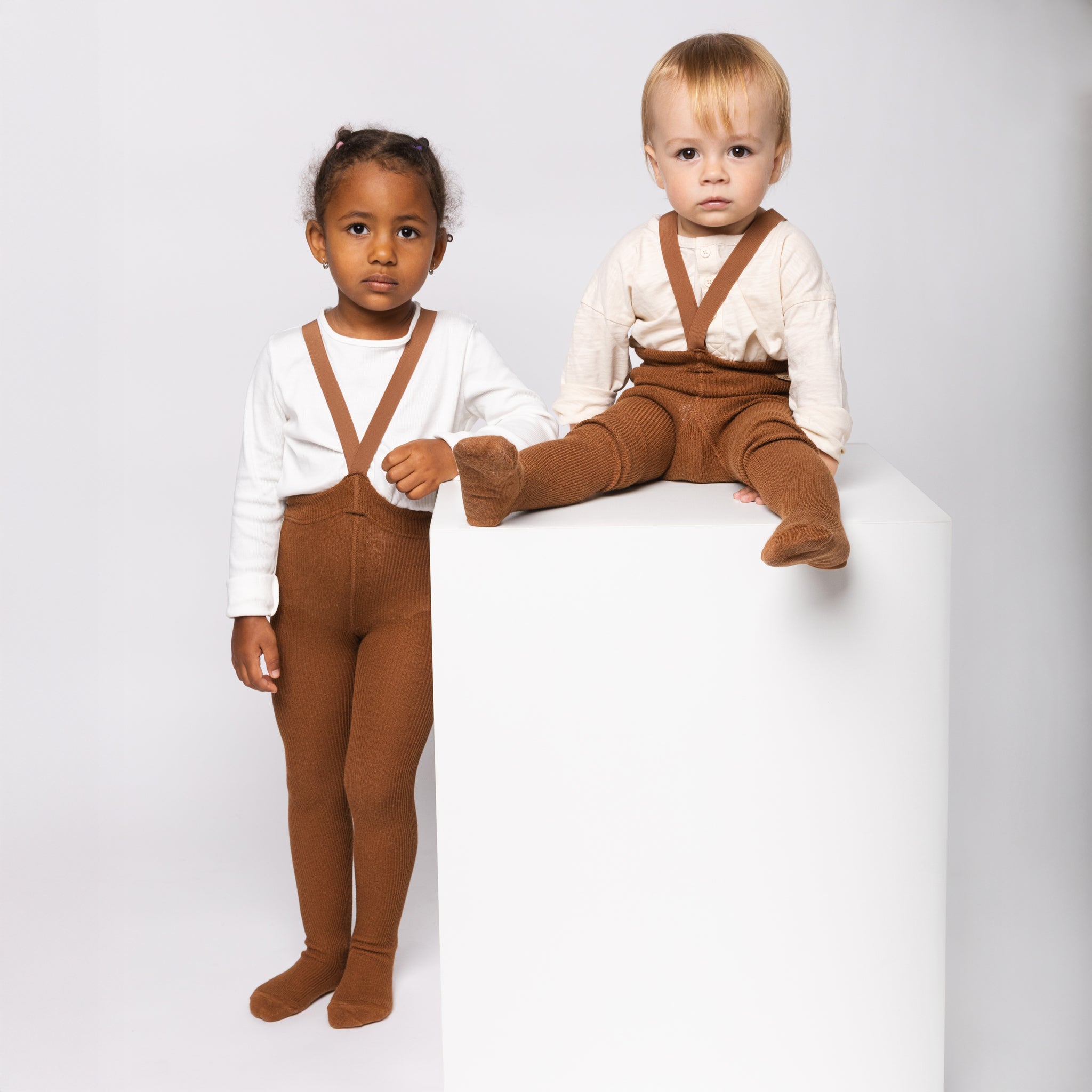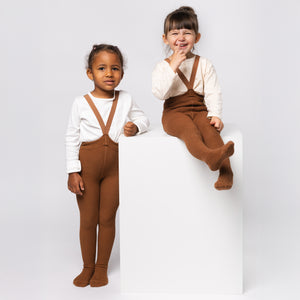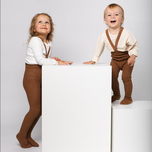 Mezi našimi prvními produkty pro vás byly legendární retro dětské punčocháče s kšandami. Tradiční řemeslný produkt s historií sahající do dob baťovských fabrik v českém Třebíči a slovenském Svitu. Nadčasové a lehce sladitelné s čímkoliv v dětském šatníku, vhodné na doma i na ven.